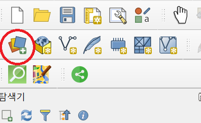 브이월드(vworld.kr)에 들어가서 '행정동'으로 검색하면 밑에 '(센서스경계) 행정동경계'가 나오는데 이게 행정동이다. 다운 받고(회원가입, 로그인 필요) 압축 푼 뒤에 QGIS에서 데이터 원본 관리자 열기 아이콘을 클릭한다.